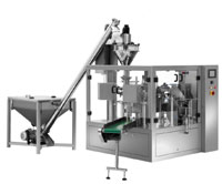 旋轉(zhuǎn)式給袋式自動包裝機適用于平面袋,自立袋,拉鏈袋等各種形狀的熱封的復合袋.